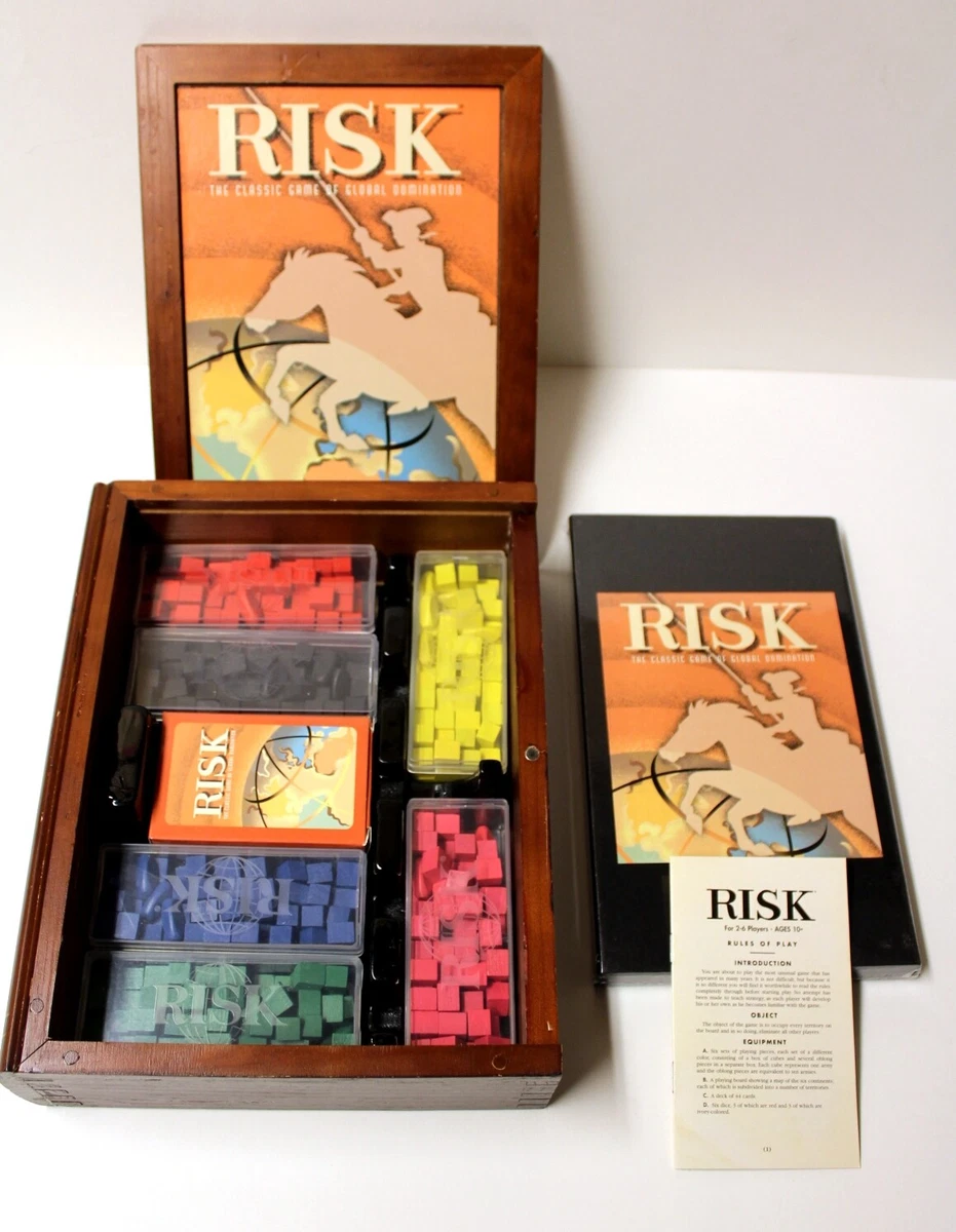 Vintage Game Collection Risk Board Game In Wooden Bookshelf Box Ebay